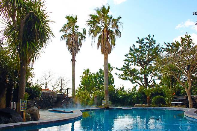 실내온천은 탄산온천수로 피로를 풀어주고 혈액순환을 촉진하며, 노천탕에서는 제주 바다의 멋진 풍경을 감상할 수 있는 것이 산방산탄산온천의 포인트.