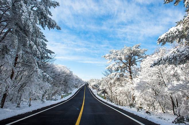 한라산 1100고지는 제주도 겨울 여행지로 대표적인 곳입니다. 특히 차로 편리하게 한라산 고지에 접근할 수 있어, 한겨울 많은 여행객이 찾는데요.