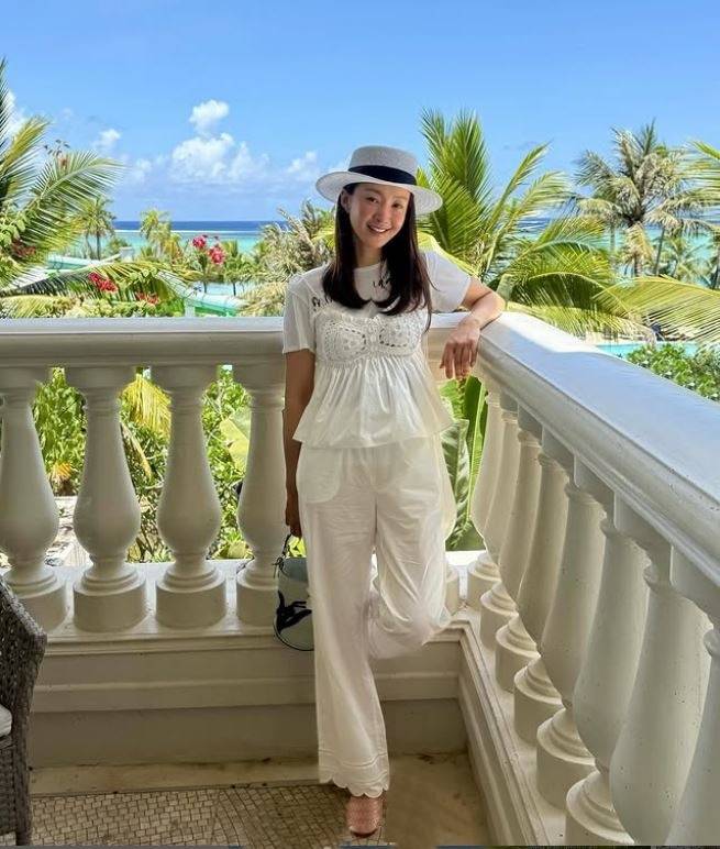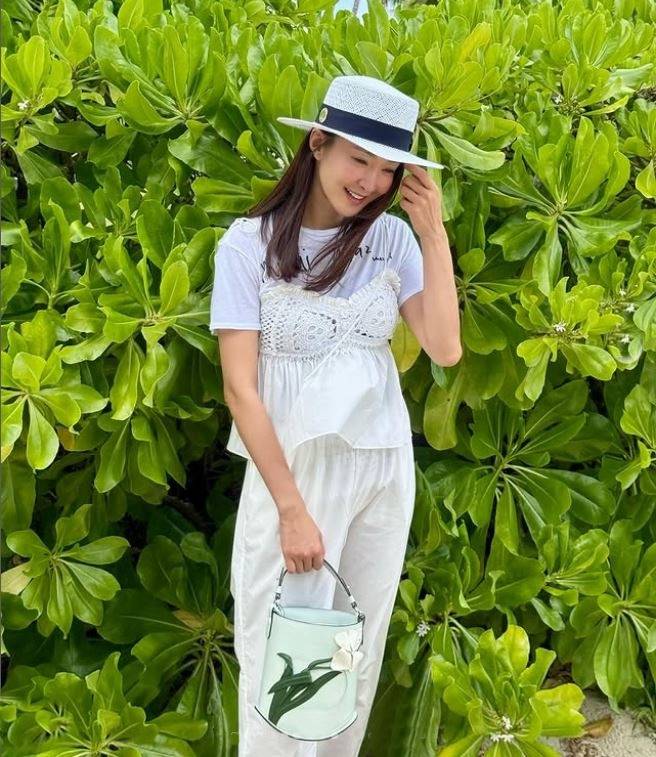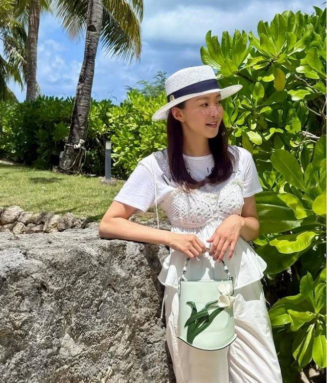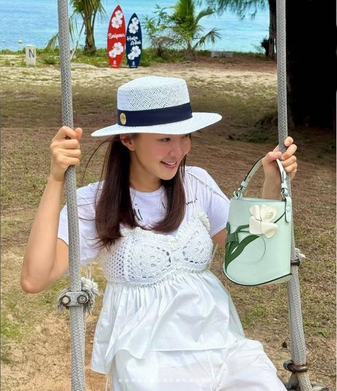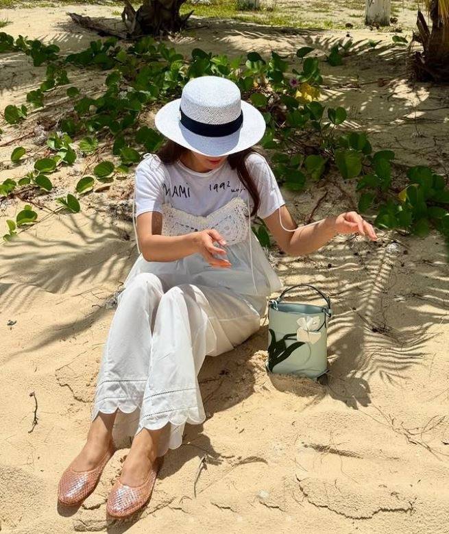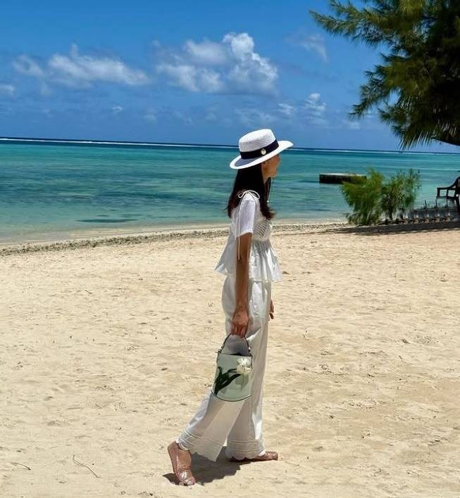 공개된 사진 속 이시영은 화이트 티셔츠와 팬츠, 여기에 크로셰 니트와 밀집모자를 레이어드한 올 화이트 여행룩으로 시선을 사로잡았다.