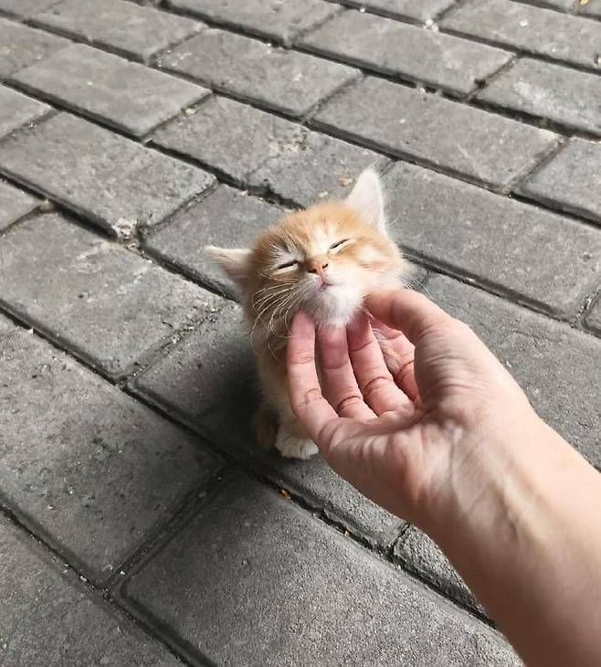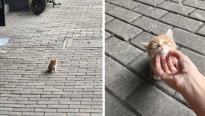 길 한복판에 귀여운 아기 길고양이가 있는데요