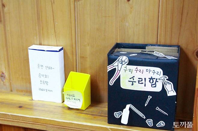 | ▲ 풀무학교 모금함과 수리함 모습. |
