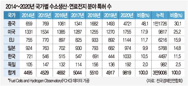 한국 기업들이 주력하는 대표적 분야는 발전용 연료전지와 수소모빌리티다. 우선 수소연료전지는 수소와 산소의 전기화학 반응으로 전기와 열을 생산한다. 이산화탄소 배출 없이 순수한 물만 배출한다. 물을 전기분해하면 전극에서 수소와 산소가 발생하는데, 이런 전기분해의 역반응을 이용하는 것이다. 한국에너지공단에 따르면 연간 연료전지 신규 보급량은 2017년 3만2715㎾, 2018년 9만7779㎾, 2019년 12만1803㎾, 2020년 15만6620㎾ 등으로 증가세다.