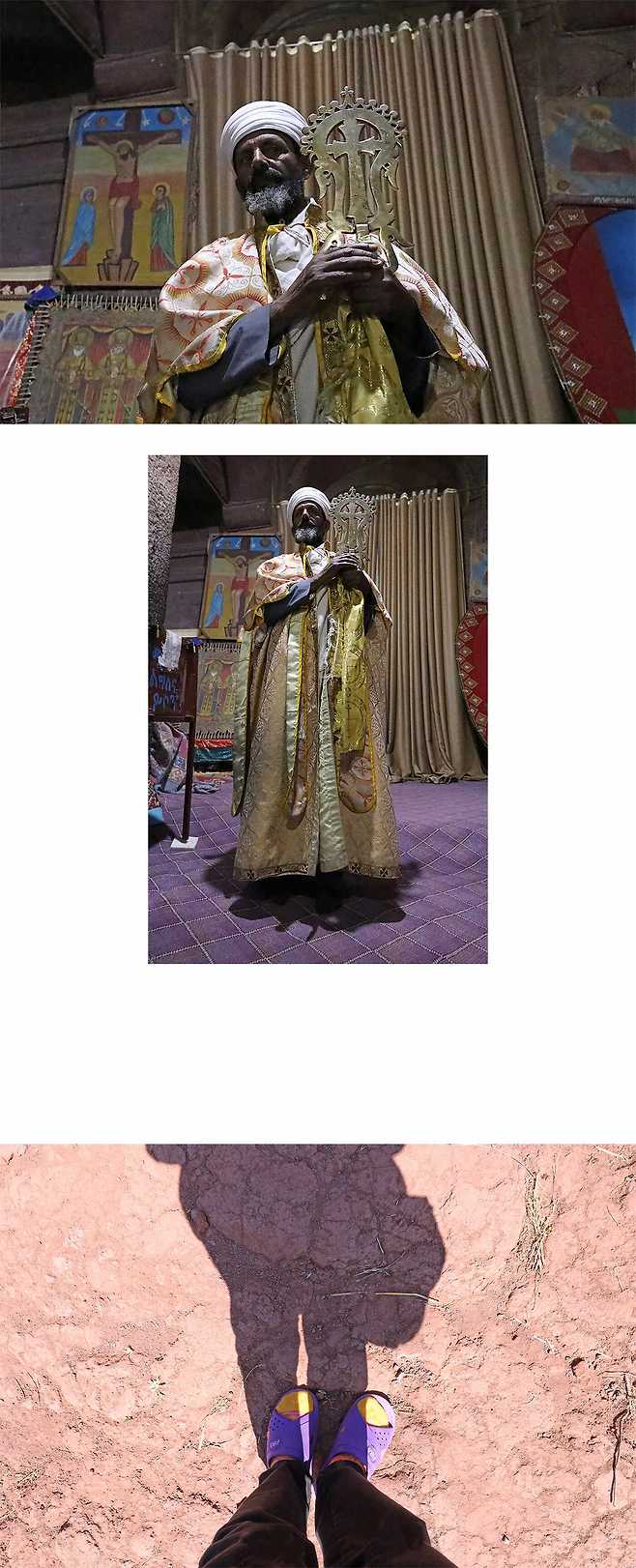 우리가 들어가자 성직자께서 장막 뒤에서 순금 십자가를 들고 나오셨고