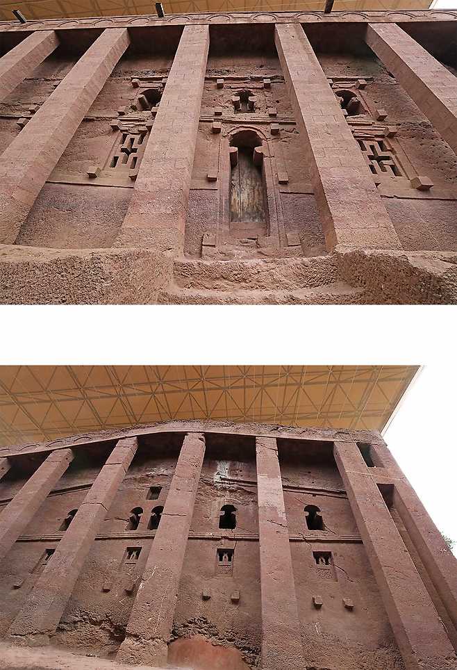 유네스코에서 암굴교회의 풍화를 막기 위해 덮개 공사를 진행했다.
