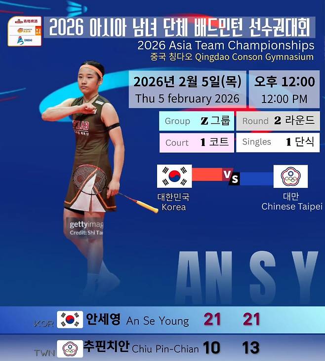 결과는 빠르게 나왔다. 안세영은 치우 핀 치안을 21대 10 21대 13으로 정리했다. 이번 대회 단체전 첫 출전에서, 가장 단체전다운 2대 0이었다.