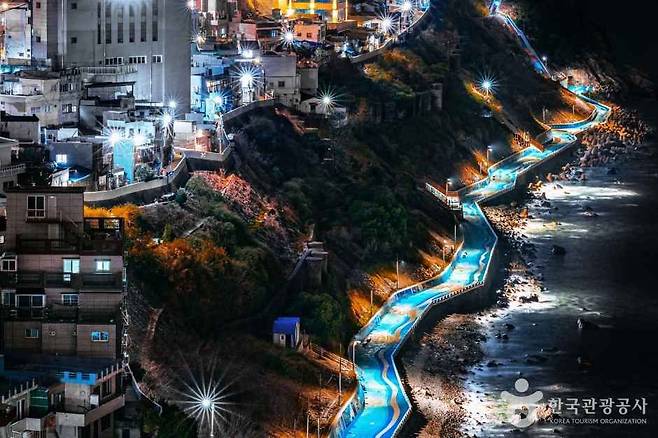 마을 아래로 내려가면 바다와 가장 가깝게 맞닿은 ‘절영해안산책로’가 나타납니다. 2014년 국토해양부가 선정한 대한민국 5대 해안누리길 중 하나로, 전체 길이 10.6km에 달하는 장대한 코스입니다. 해안터널과 해녀촌의 정취 산책로를 따라 걷다 보면 절벽을 뚫어 만든 '흰여울 해안터널'이 나타나 이색적인 풍경을 제공합니다.