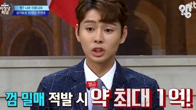 “껌은 의학용 이외에는 소비하실 수가 없어요. 싱가포르에는 껌이 없어요. 의학용으로 드시는 게 아니고서는요.”