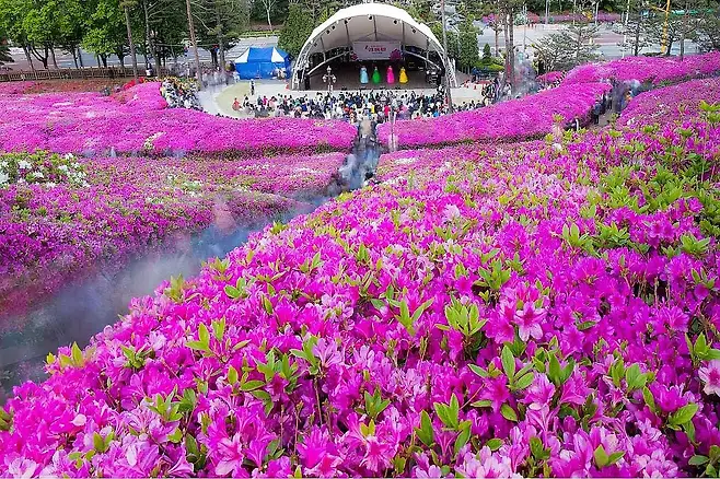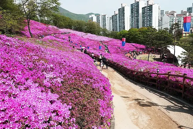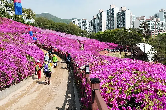 군포철쭉축제는 매년 4월 중순부터 말까지 개최되며, 축제 기간 동안 군포 전역이 철쭉빛으로 뒤덮인다. 특히 22만 그루에 달하는 철쭉이 만개하는 군포철쭉동산은 화사한 꽃길로 가득해, 사진만 찍어도 봄 기운이 물씬 전해진다. 이곳의 철쭉은 어느새 군포를 대표하는 봄 명소로 자리 잡아, 주말이면 가족단위 나들이객과 연인들로 붐빈다.