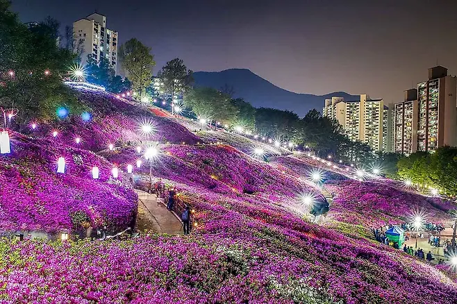 꽃놀이의 핵심은 단연 군포철쭉동산이다. 과거 삭막했던 산본 신도시 언덕을 주민들이 조금씩 가꾼 덕분에, 현재는 형형색색 철쭉이 군락을 이루며 특별한 꽃동산을 이뤘다. 언덕을 따라 오르는 길마다 만개한 철쭉이 펼쳐져, 어디서 사진을 찍어도 인생샷이 나온다는 평가를 받는다.