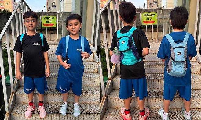 공개된 사진 속 윌리엄과 벤틀리는 계단 위에 나란히 서서 미소를 짓고 있다. 어두운 색 상의와 반바지를 맞춰 입은 채 같은 디자인 가방을 착용한 이들은 사랑스러운 형제 케미를 자랑했다.