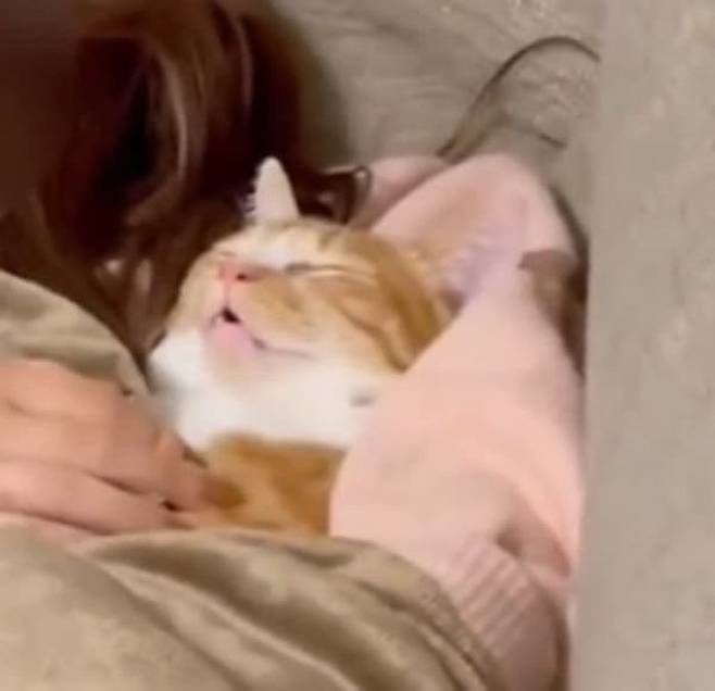 사연은 이렇습니다. SNS상에는 집사 옆에 나란히 누워서 자는 고양이 모습이 담긴 영상이 올라왔죠.
