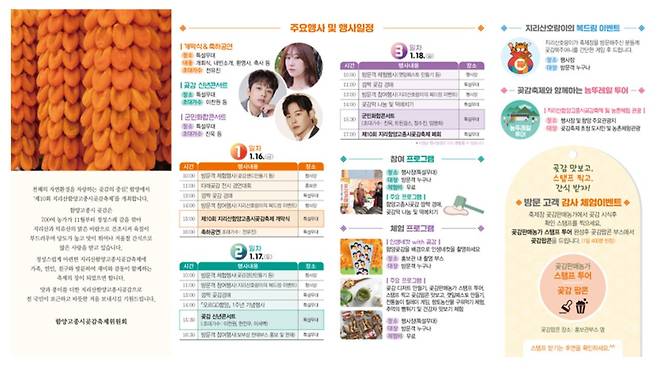 곶감 샌드 만들기, 곶감 디저트 체험, 떡메치기, 전통놀이, 스탬프 투어 등 참여형 이벤트가 많아 가족 단위 방문객 만족도가 높습니다.