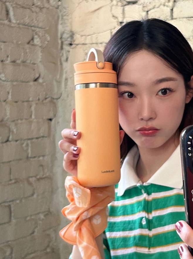 공개한 사진에서 이유미는 머리에 오렌지 두건 스카프를 두르고 초록 스트라이프 티셔츠와 화이트 미니 스커트로 상큼하면서도 발랄한 10대 소녀 같은 걸리시룩을 완성했다.