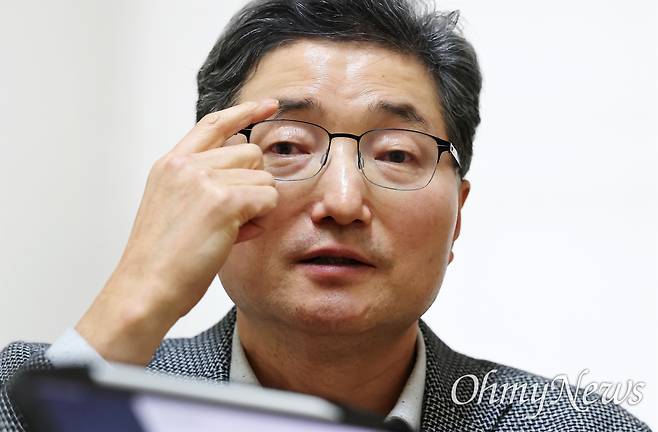 | ▲ 이승헌 전 한국은행 부총재(숭실대 교수)가 19일 서울 동작구 숭실대에서 오마이뉴스와 인터뷰하고 있다. |