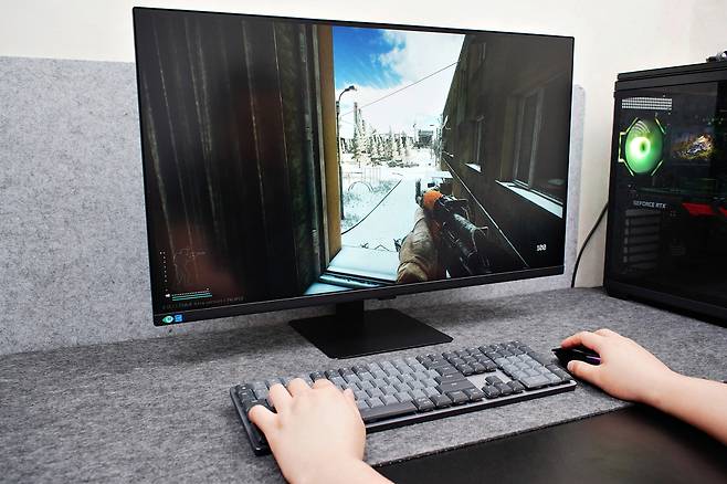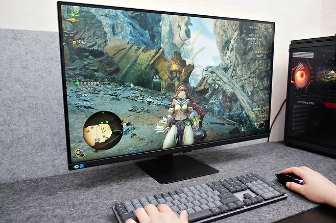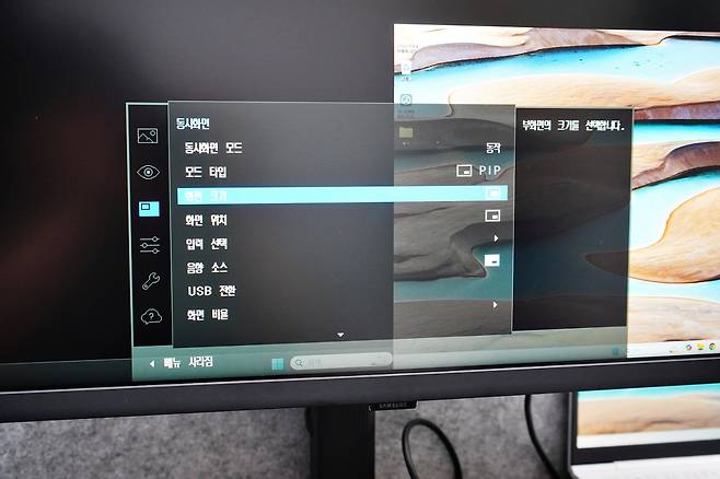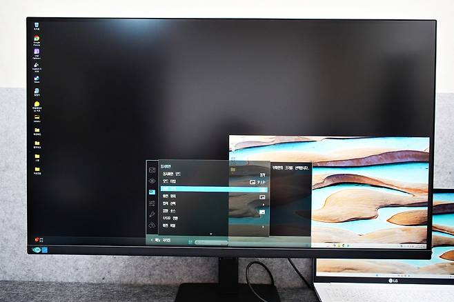 작업용으로 사용할 때 가장 유용했던 기능은 KVM 스위치였습니다. 데스크탑과 노트북을 동시에 연결해놓고 하나의 키보드와 마우스로 제어할 수 있어 두 대의 시스템을 자주 오가는 환경에서 효율적이며, PBP나 PIP 모드를 함께 활용하면 메인화면과 서브화면의 위치를 유동적으로 조정할 수 있어 개인 작업 스타일에 맞게 설정이 가능했니다.