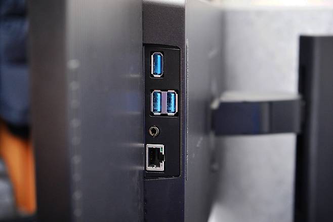 USB 포트 3개와 인터넷 포트가 추가로 제공돼 확장 허브 없이도 주변기기 연결이 가능합니다. 맥북이나 맥미니 사용자라면 단자 수 부족 문제를 이 모니터 하나로 해결할 수 있을 것입니다.