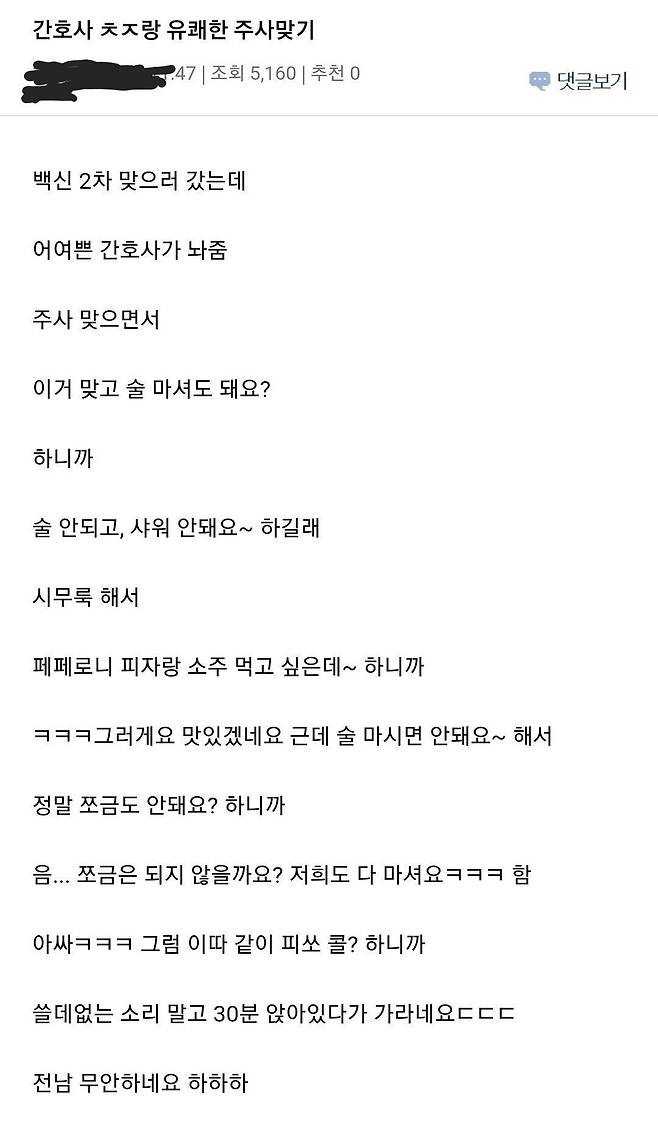 주사 맞다 말고 이쁜 간호사에게 작업하는 남자