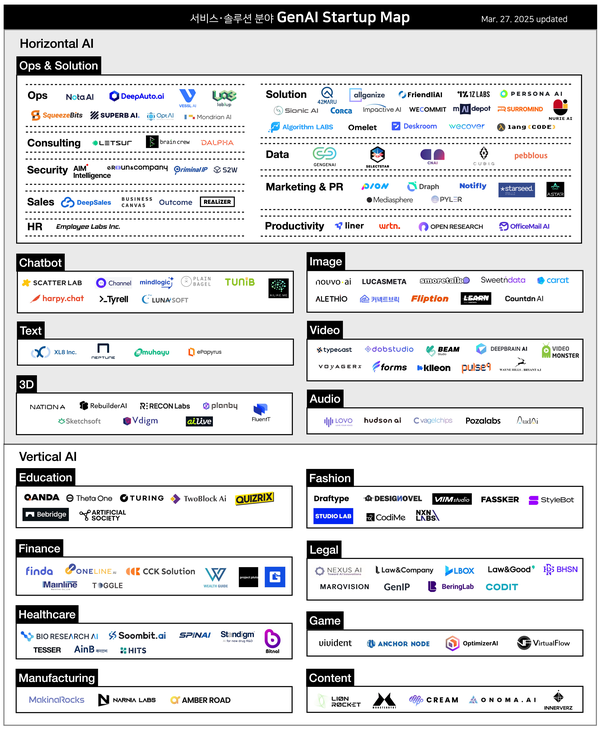 이어 "2023년 기준, 한국의 생성형 AI 스타트업은 B2C 중심의 챗봇, 텍스트 생성, 이미지 편집 등 대중 시장을 타겟으로 한 서비스를 주로 선보였다"며 "2년이 지난 현재, B2B 엔터프라이즈 솔루션으로 무게 중심이 옮겨갔다"고 평가했다.