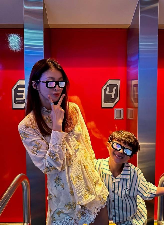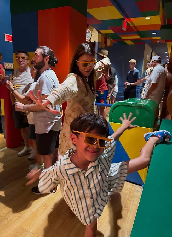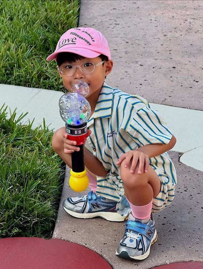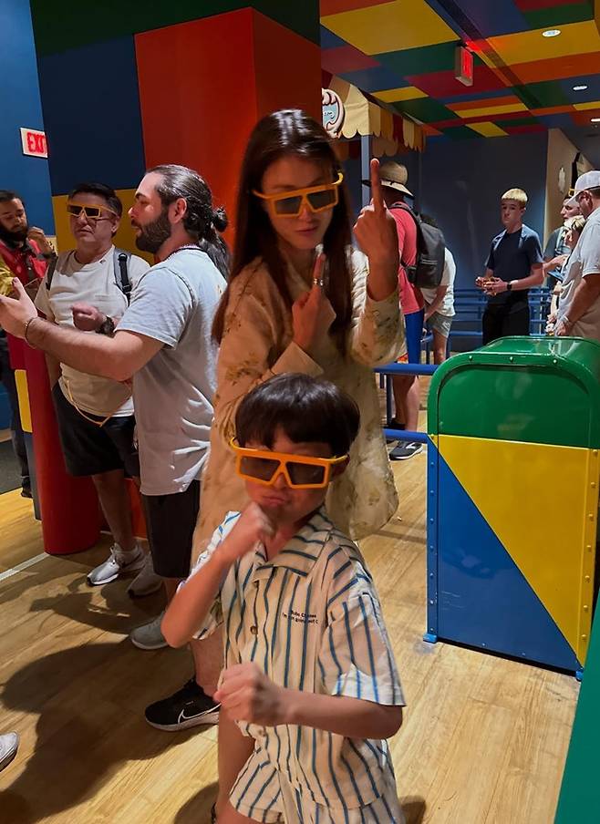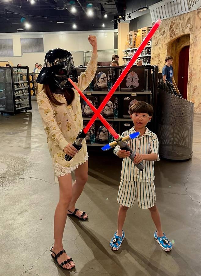 배우 이시영이 미국 디즈니에서 아들과 함께 파자마를 입은 듯 자유분방한 스타일의 커플룩으로 눈길을 사로잡았다.