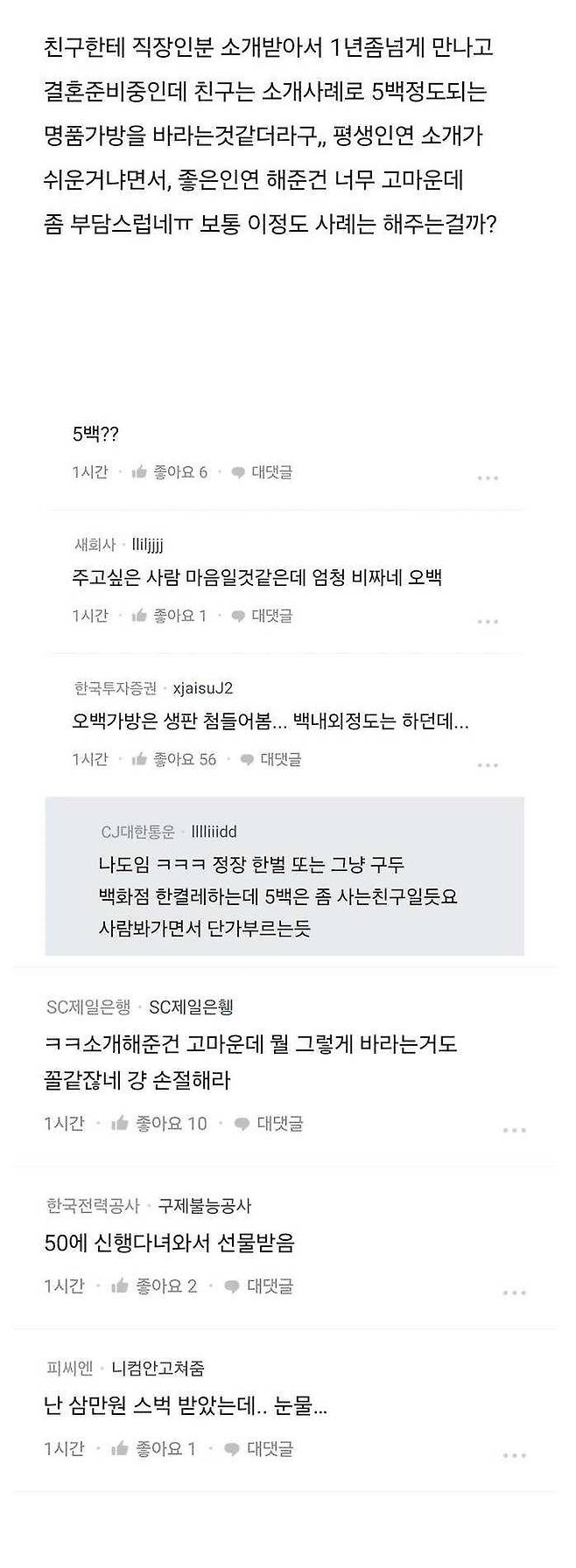 결혼하니 소개비 사례로 500만원 달라는 친구