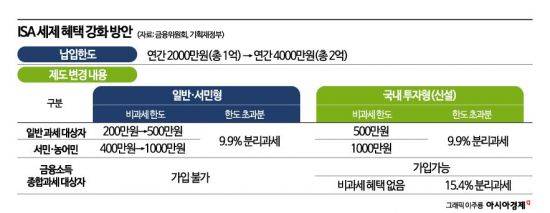 기존에는 금융종합소득과세자의 경우 가입이 제한되었는데, 이제 자산가들도 ISA 계좌에 가입할 수 있습니다.