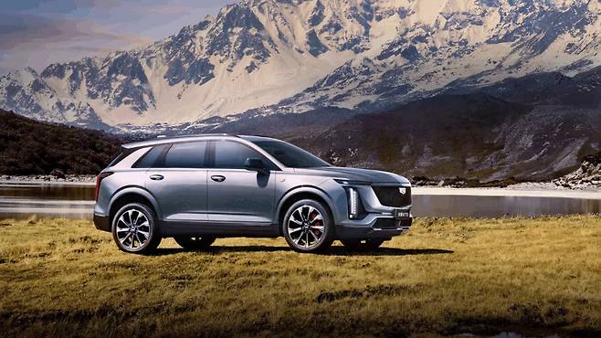 이는 기아 쏘렌토보다 큰 차체로, 제네시스 GV80(전장 4945mm, 휠베이스 2955mm)과 유사한 수준이다. 휠베이스가 짧은 만큼 캐딜락 특유의 짧은 오버행과 당당한 비율이 강조됐다.