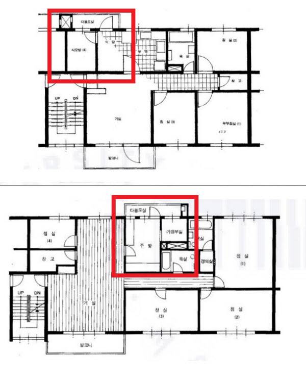 1970년대 후반 지어진 총 3930가구의 ‘잠실주공5단지’에서도 비슷한 모습이 목격된다. 이 단지는 전용면적 76㎡~82㎡의 중형 평형으로만 이뤄졌으나, 전 가구에서 주방 옆 작은 공간을 확인할 수 있다. 전용 82㎡의 경우 가장 작은 방은 주방 안쪽에 홀로 위치했으며, 바로 옆에는 다용도실이 있다.