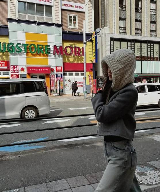 사랑스러운 니트 바라클라바. 깊은 모자폭과 묶을 수 있는 끈이 매력적이에요.