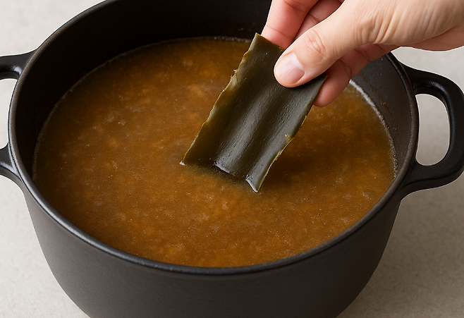▶ 다시마 4장(물 600ml에 20분 담가 다시마물 준비) ← 이게 핵심!