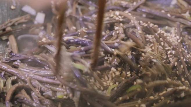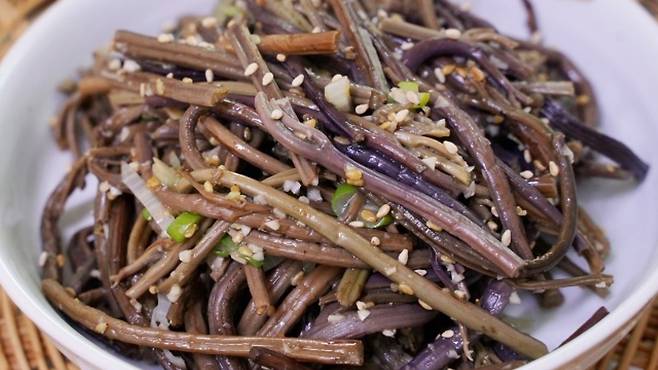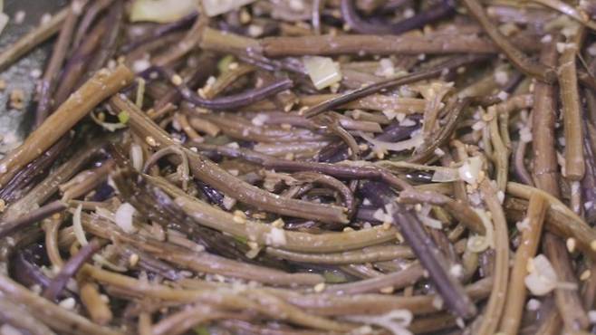 가장 먼저 해야 할 일은 바로 고사리 손질이에요. 고사리를 만져보면 뻣뻣한 부분이 있는데요. 이 부분은 따로 제거한 후 사용하는 것이 좋답니다.