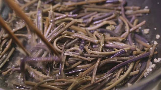 5분이 지나면 '강불'에서 1분간 고사리를 볶으세요.