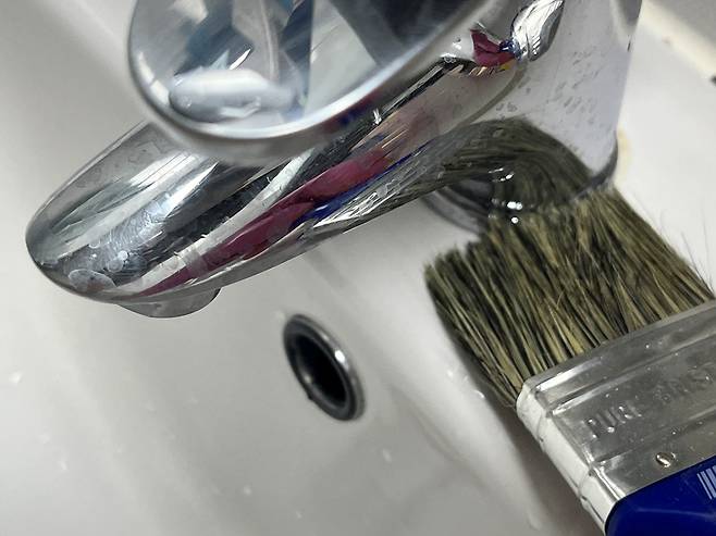 욕실에서 수전 청소할 때도 수전 아랫부분을 붓을 활용해 청소해 보세요. 이렇게 하면 접합 부분에 낀 물 때나 곰팡이 등을 쉽게 제거할 수 있습니다.
