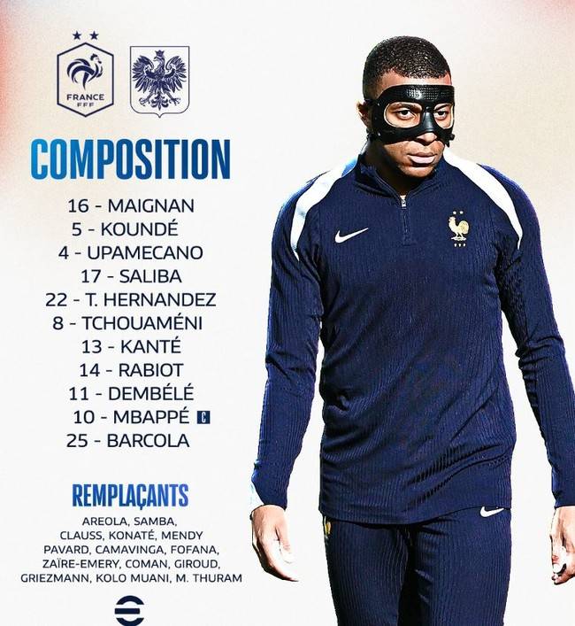 프랑스와 폴란드의 선발 라인업이 나왔다.