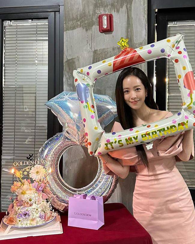 라는 글과 함께 생일 케이크와 꽃다발을 들고 있는 사진을 게재해 행복한 모습을 보여주었다.