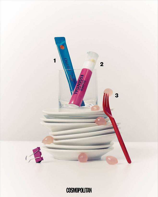 가장 중요하게 고려해야 할 것은 체내 흡수율을 결정짓는 분자 크기! 시중에 판매되는 대부분의 콜라겐은 피시(fish) 콜라겐에 속하며, 500~1000Da 범위를 저분자 콜라겐, 500Da 이하 제품을 초저분자 콜라겐으로 분류한다. 콜라겐은 분자 크기가 작을수록 체내 흡수율이 올라가는데 그렇다면 분자 크기가 작다고 해서 무조건 좋은 제품일까? 그럴 수도 있고, 아닐 수도 있다. 흡수율이 높아지는 것은 사실이지만 콜라겐은 단백질이기 때문에 분자 크기가 작을수록 특유의 쓴맛이 강해진다. 이를 완화하기 위해 각종 첨가제와 화학 성분을 포함하는 경우가 많으므로 제품 선택 시 주의가 필요하다. 분자 크기를 확인했다면 이제 성분표도 꼼꼼히 살펴야 한다. 합성 향료나 착색료, 과한 당류가 함유된 제품은 가급적 피하고 HPMC, 스테아린산마그네슘 등 화학 부형제가 포함된 제품도 배제하는 것이 좋다. 또 어떤 부원료가 어느 정도의 배율로 배합되었는지도 중요한 체크 포인트다. 가급적 콜라겐의 체내 합성에 필수적인 역할을 하는 비타민 C를 포함한 제품을 고르는 게 좋으며, 콜라겐 생성을 촉진하는 비오틴과 비타민 A, 콜라겐과 함께 피부 진피층을 구성하는 히알루론산과 엘라스틴, 마지막으로 피부에 보호막을 형성해 수분 증발을 막아주는 세라마이드를 함유한 제품인지도 확인할 필요가 있다. 간혹 콜라겐 제품을 구매할 때 가격이 지나치게 저렴하다면 피시 콜라겐보다 체내 흡수율이 떨어지는 동물성 콜라겐 제품일 수 있다. 콜라겐은 젤리, 액상, 캡슐, 정제, 파우더 등 다양한 형태로 출시되며 같은 분자량이라면 액상형 제품이 가장 빠르게 흡수된다. 젤리, 가루, 알약 형태는 흡수율이 비슷한 수준이다. 평소 피시 콜라겐 특유의 비릿한 향이 부담스럽다면, 꾸준히 섭취할 수 있는 젤리나 가루 타입도 좋은 선택이 될 수 있다.