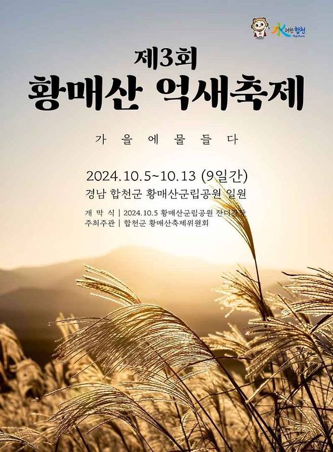 경상남도 합천군 – 황매산군립공원에서 대규모 억새 군락지를 배경으로 한 ‘황매산 억새 축제’가 10월 5일 개막한다.