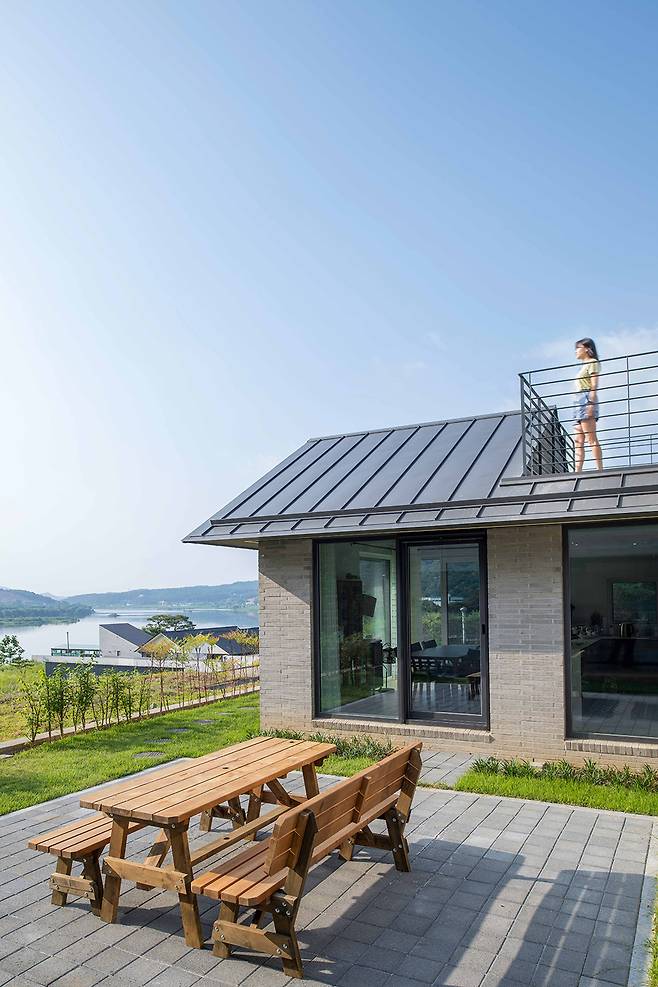 건축가가 바라본 인향재는 짙은 녹음과 함께, 남한강과 어우러진 모습이었다. 너울지는 지붕은 양자산의 모습과 조화를 이루고, 차분한 회색이 주변 녹음과 대비되어 더욱 푸르게 만들어준다. 시간에 따라 변하는 햇살은 탁 트인 집을 따뜻하게 변화시키며, 때에 따라 자연이 만들어주는 다양한 모습으로 연출된다. ‘사람 사는 향기가 나는 집’ 인향재는 건축주 부부를 닮아 다채롭고 따뜻한 향기 나는 집이다.