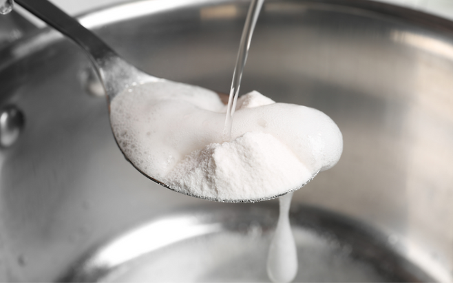 큰 볼에 물 1리터를 받습니다. 여기에 베이킹소다 1스푼을 넣고 잘 녹인 뒤 과일이나 채소를 10~15분 담가둔 후 흐르는 물에 깨끗이 헹궈내면 됩니다. 포도, 사과, 오이, 토마토 등 껍질째 먹는 농산물일수록 효과적입니다.