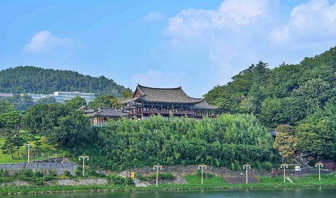 동서 5간, 남북 4간의 팔작지붕 구조를 가진 2층 누각으로, 중앙에 대루를 두고 좌우로 능파각·침류각·여수각이 배치된 독특한 건축 형식이 특징이다.