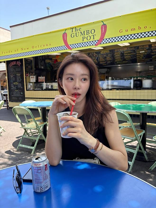 이어진 컷에서는 니트 민소매 톱과 린넨 팬츠 조합으로 가볍고 시원한 여름 무드를 완성했죠.