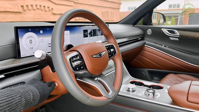 디자인은 GV80만의 품격을 담고 있다. 전면부 크레스트 그릴과 투라인 헤드램프는 존재감을 확실히 드러내며, 측면의 캐릭터 라인도 날렵하게 다듬어졌다. 실내는 27인치 OLED 와이드 디스플레이와 고급 우드·금속 소재가 조화를 이루며, 다이얼식 변속기와 감성 조명까지 ‘디럭스 라운지’ 같은 분위기를 만든다.