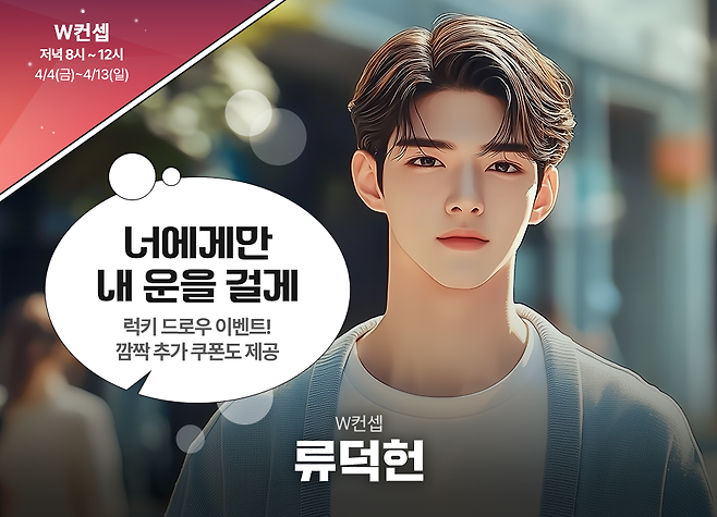 점점 따뜻해지는 날씨, 어디 놀러가고 싶은데, 작년엔 대체 뭘 입었던 걸까요? 이럴 때 둘러보게 되는 곳, 바로 W컨셉입니다. W컨셉에서는 매일 저녁 8시 ‘럭키 드로우 이벤트’가 열립니다. 에토스 가죽 재킷, 아디다스 도쿄, 비비안 웨스트우드 클러치, 꾸레쥬 레더백 등 탐나는 아이템들만 쏙쏙 골랐죠. 여기에 주간에는 깜짝 쿠폰 혜택까지 추가로 진행된다는 사실! 설레는 봄, 새로운 스타일링을 준비할 때가 왔어요. 랜쇼페만을 위해 준비한 특별한 혜택으로 옷장을 채워보세요!