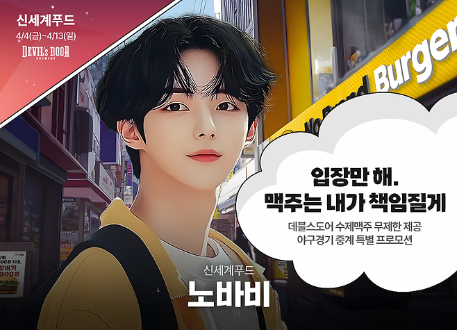 홈런이 터지는 그 순간, 데블스도어에선 시원한 맥주 한 잔. 아니, 무제한 맥주가 함께합니다. 4일부터 맥주 한 잔 가격, 1만원으로 3시간 동안 무제한으로 데블스도어의 수제 맥주를 즐겨보세요. 매장 내 대형 전광판으로 SSG랜더스의 생생한 야구 경기를 즐길 수 있는 11일부터 13일, 유니폼을 입고 데블스도어 코엑스점을 방문한 당신에게는 무제한 맥주와 함께 뜨거운 야구 열정에 보답하는 더욱 특별한 혜택까지! 짜릿한 경기와 시원한 맥주가 만들어주는 완벽한 밤. 이번 야구 시즌이 더 기대되는 이유입니다.