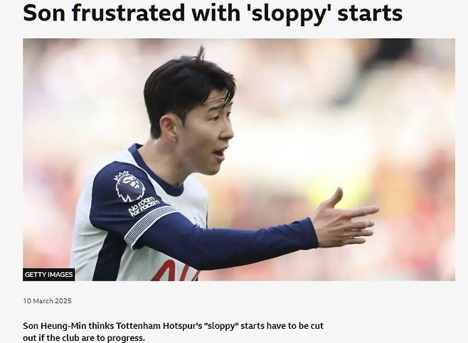 영국 공영방송 'BBC'는 10일 "손흥민은 엄성한 팀의 모습에 좌절했다"라고 보도했다.