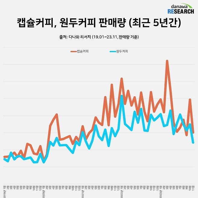 2019~2023 캡슐커피 및 원두커피 판매량