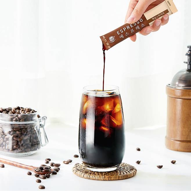 찬 물에도 잘 녹는 액상 커피를 활용하면 집이나 사무실에서도 간편하게 아이스 아메리카노를 만들 수 있어, 여름철에 판매량이 두 배 정도 증가한다.