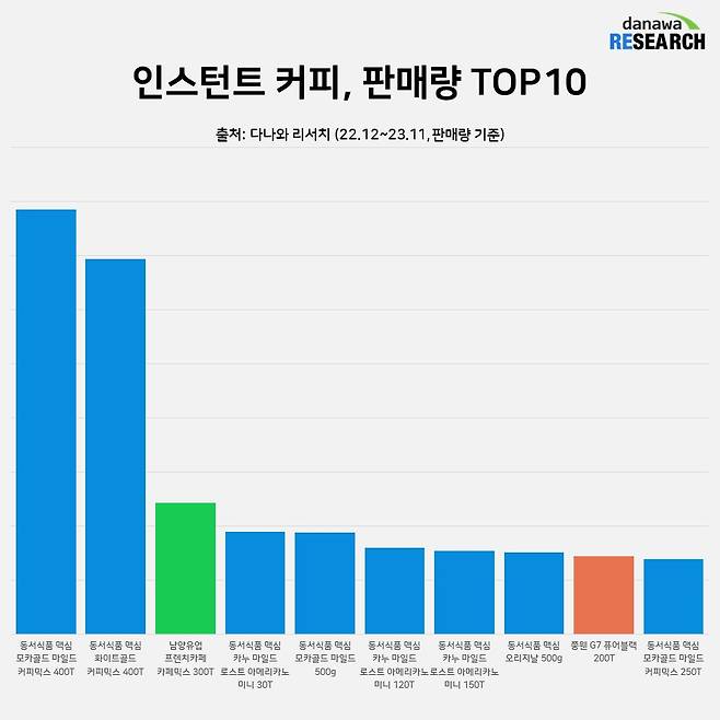 인스턴트 커피 판매량 TOP 10