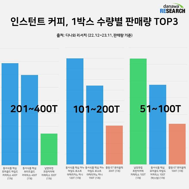 인스턴트 커피 수량별 판매량 TOP3