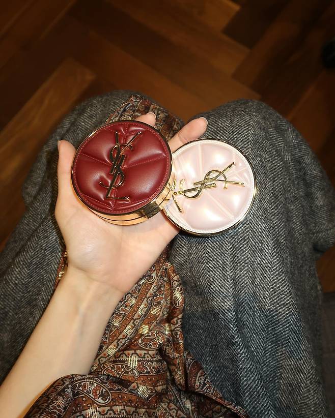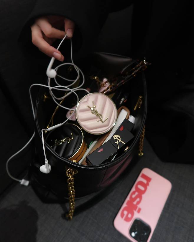 소지품으로는 입생로랑의 뷰티 제품들이 눈에 띄었습니다.YSL 쿠션 컴팩트와 립스틱을 사용하는 장면이 포착됐고,로제의 가방 안에도 YSL 쿠션이 레드, 핑크, 블랙 컬러로 다수 들어 있어브랜드 앰버서더로서의 모습을 엿볼 수 있었습니다.