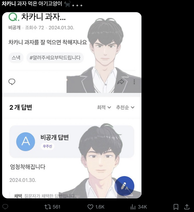 답변한 사람은 더 귀여운 이 지식인….